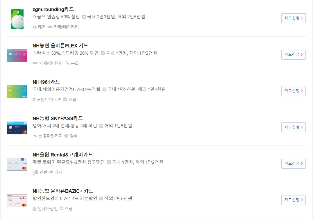 여기서 nh농협 올바른flex카드를 선택을 해봤어요