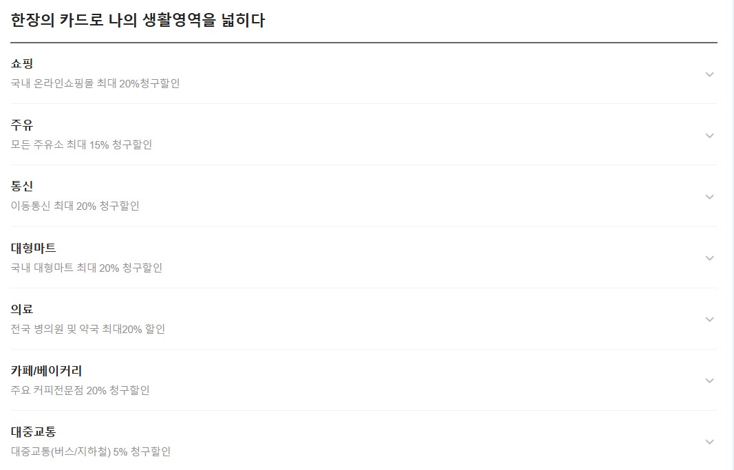 이외에 대형마트나 대중교통 기타 청구 할인도 가능하고 의료부분도 할인적용이 되네요