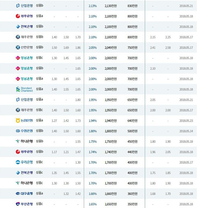 그외에 수협과 부산등 아무래도 지방 은행등이 조금이라도 금리가 높고 그리고 요즘은 케이뱅크나 토스등 해당 은행등도 오프라인 지점은 없지만 온라인 전자은행이라 오히려 이율이 높을수도 있으니 참고하면 좋겠네요