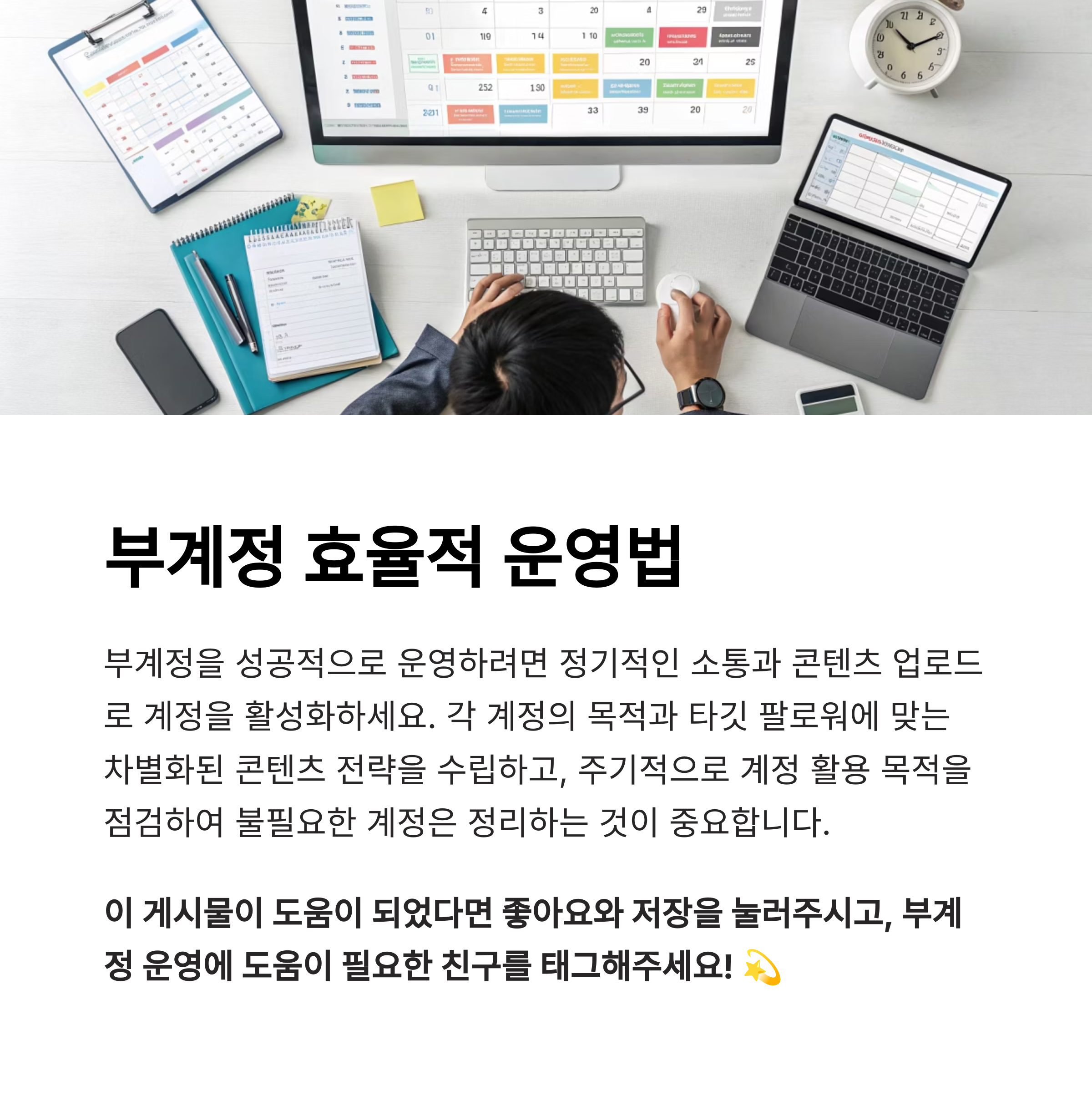 | 부계정 필요성 | 업무와 사생활 분리, 주제별 콘텐츠 운영에 필수 |