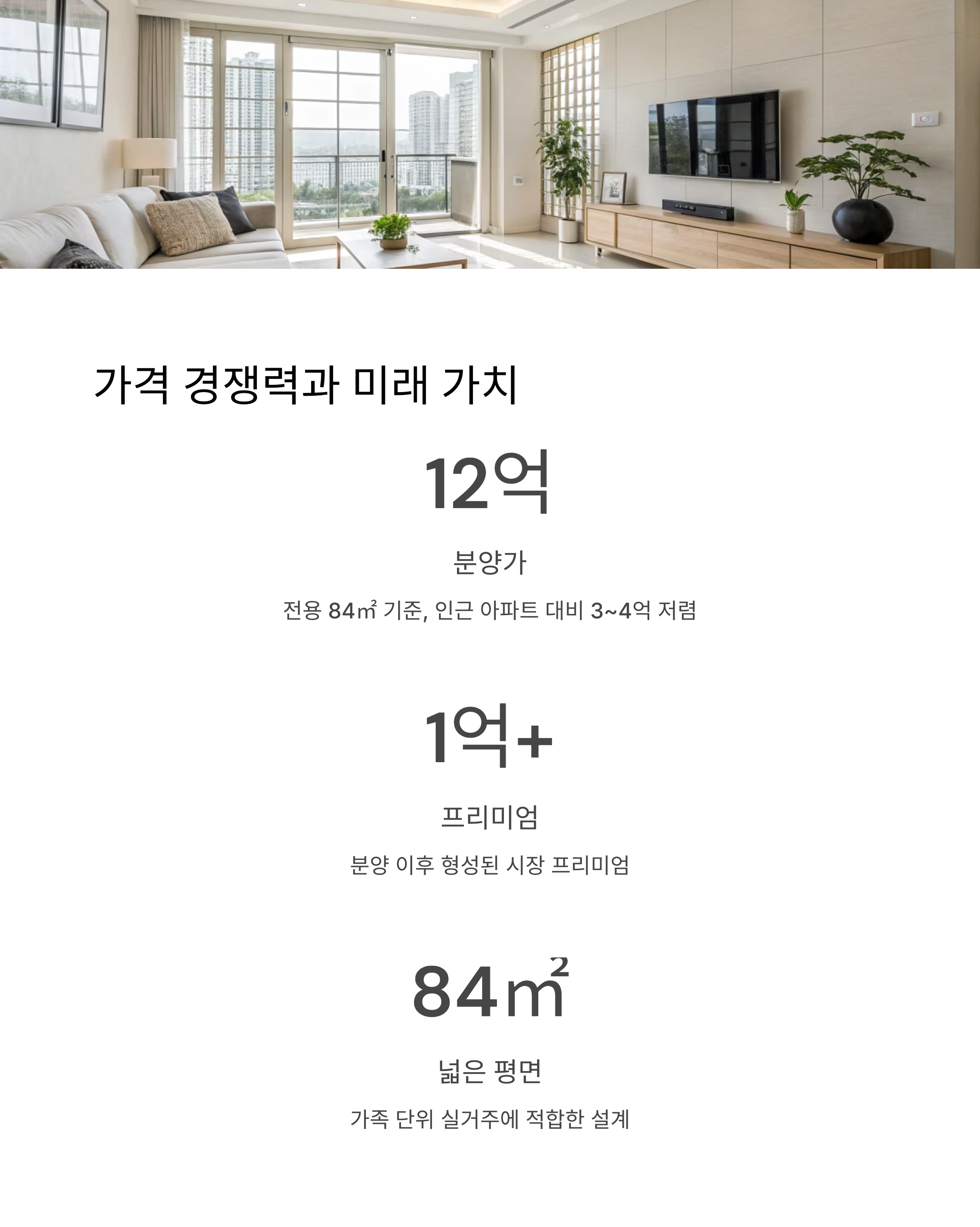 | 분양가 | 약 12억 원 | 약 15억 원 이상 |