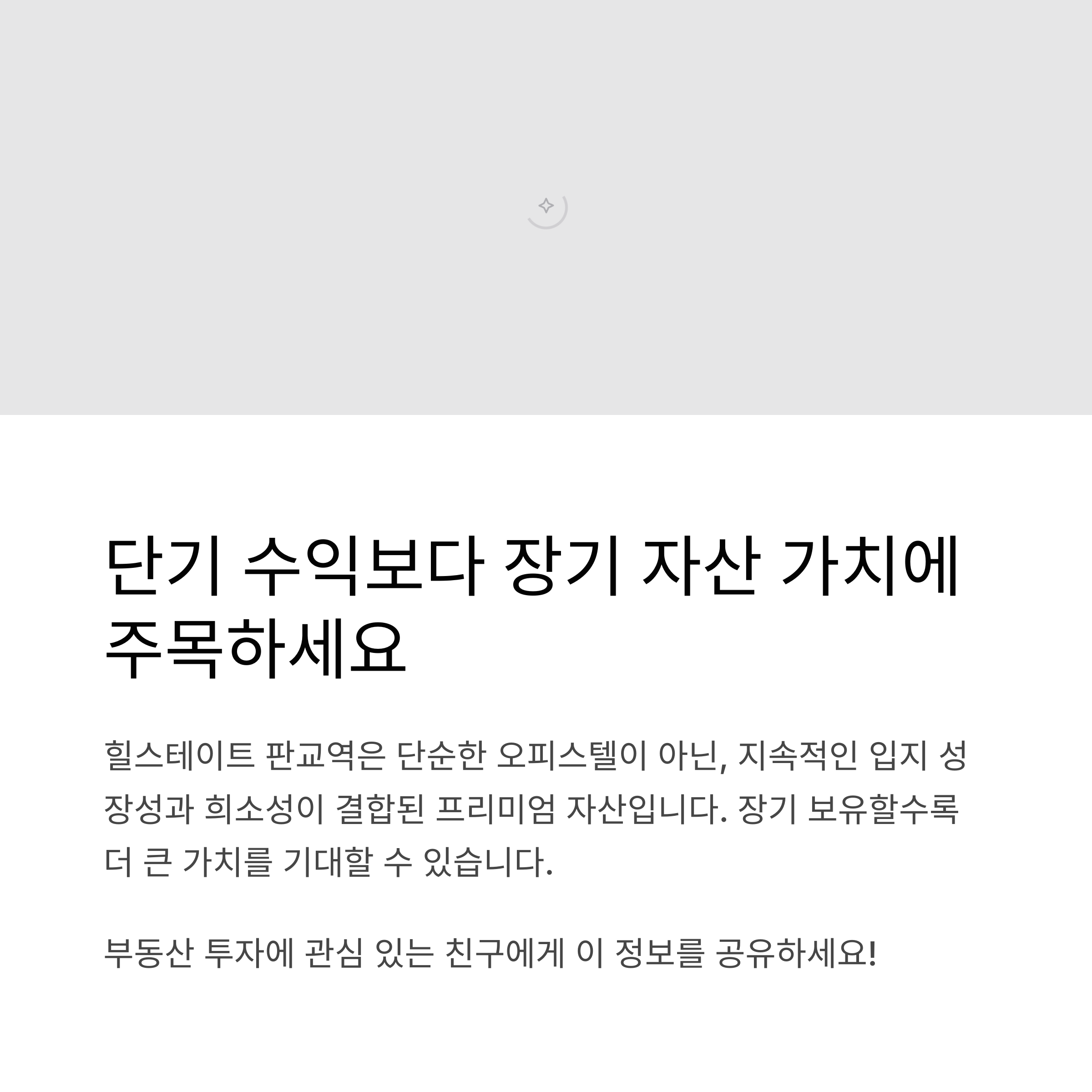 하지만 힐스테이트 판교역은 지속적인 입지 성장성과 희소성이 결합된 자산입니다.