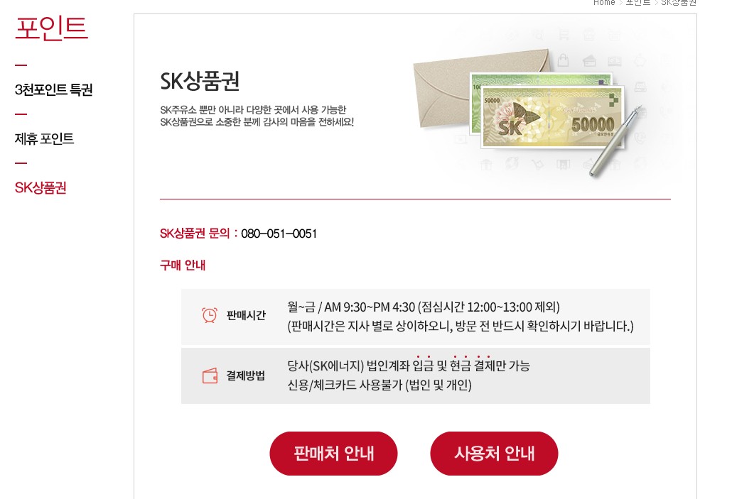 sk상품권은 주유소 뿐만 아니라 다양한 판매처 사용처를 통해서 이용이 가능합니다.