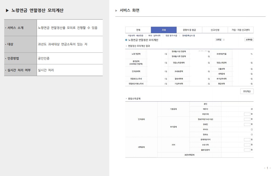 그리고 자신의 노령연금에 대한 과세대상 연금소득이 있거나 아니면 실시간 처리로도 이용이 가능합니다. 종합소득공제를 통해서 인적공제 세액공제등을 확인할수 있습니다.