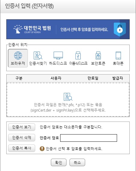 기타 본인 확인을 해야 하기 때문에 하드디스크에 본인 공인인증서 선택후 암호 입력을 합니다.