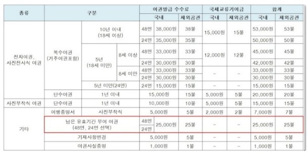기타 여권 발급 수수료도 제출을 해야 하니까요 10년과 5년등 해당 기간에 따라서 가격이 차등이 있음을 알수 잇습니다. 아무래도 여행을 자주 간다고 생각하면 위와같이 해당 사용년도를 우리가 미리 잘 설정하면 좋을것 같아요