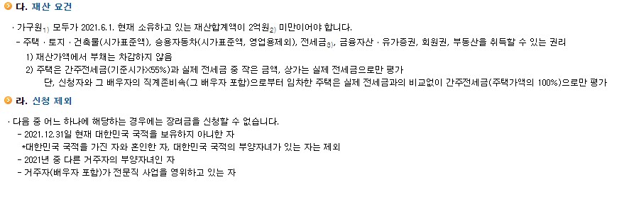 이외에 재산이 2억원 미만이어야 가능함으로 되어있네요