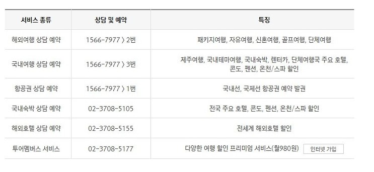 그외에 투어멤버스 서비스는 3708 5177로 전화하시면 됩니다. 전국에 콘도 펜션 온천등에서 활용하면 되고 기타 국내선 국제선 항공권 예약 발권도 활용하시면 됩니다.