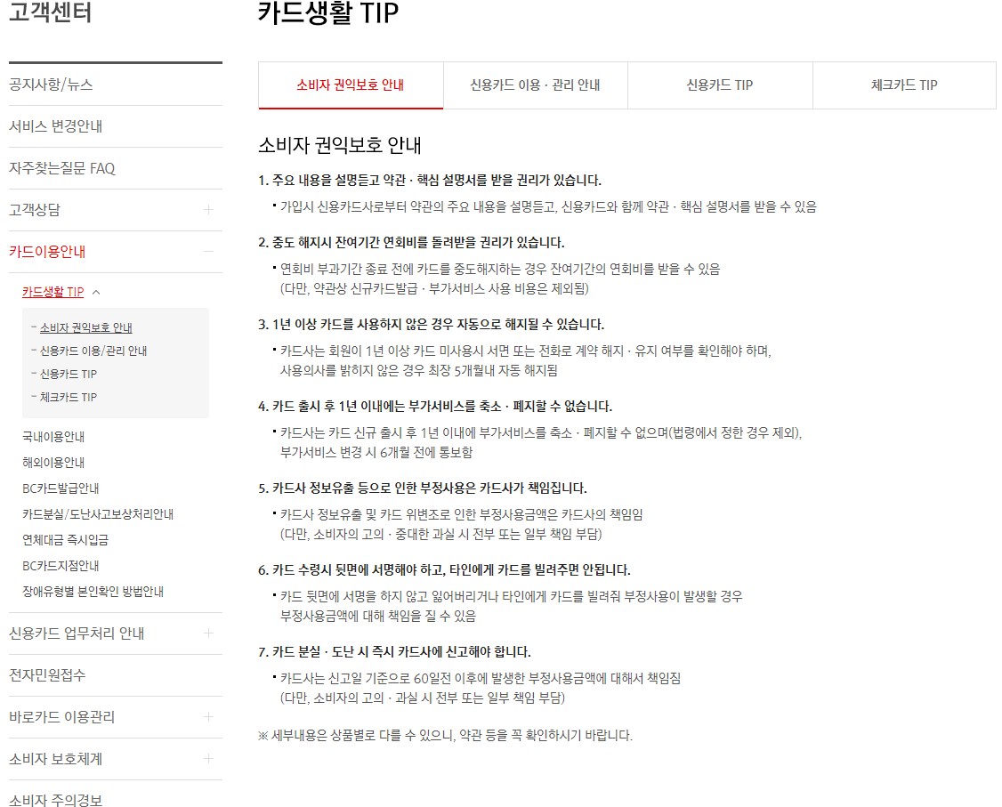 기타 자주 질문하는 내용에 대한 답변을 아래와 같이 카드생활tip을 활용하면 되는데요