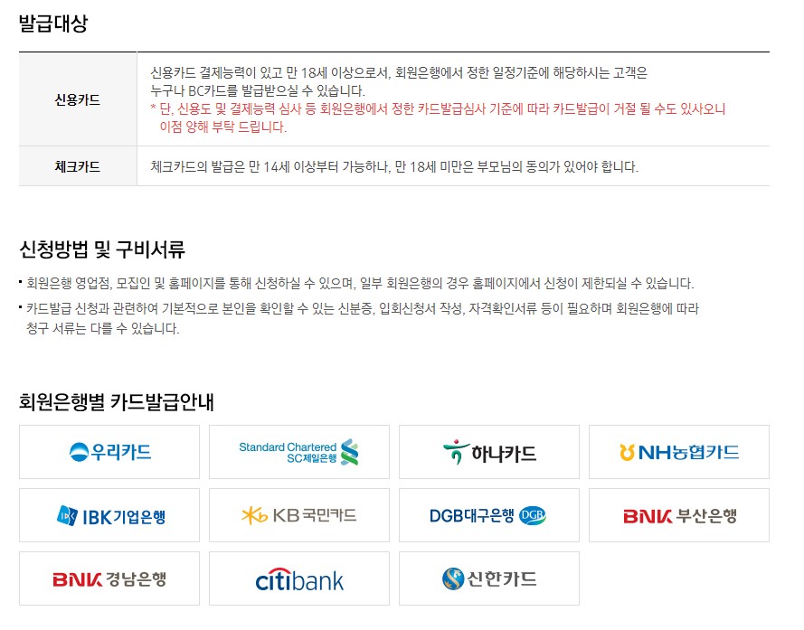 그외 회원은행별 카드 발급안내를 통해서 bc카드중에 citibank 또는 신한카드 dgb대구은행등 다양하게 내가 현재 발급받은 은행을 확인해보시면 됩니다.
