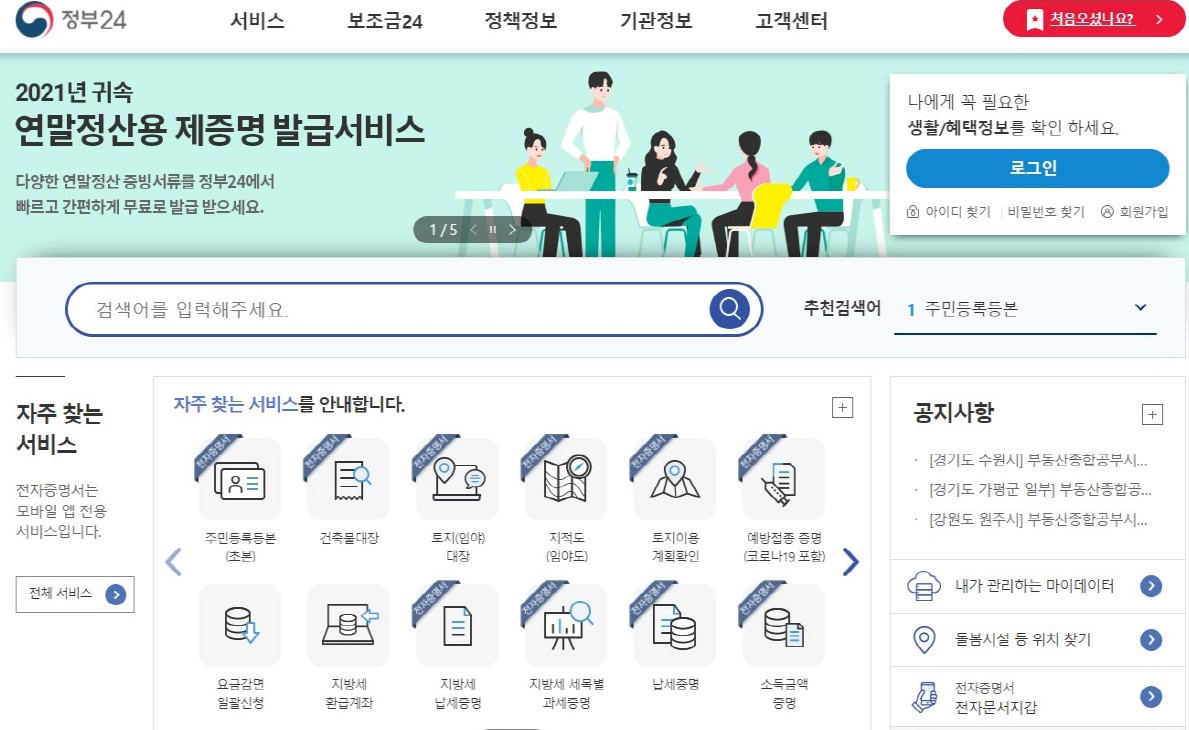 정부24에는 다양한 민원사이트를 활용하면 되니까요 기타 국민기초생활수급자 증명이나 아니면 외국인인 경우도 잘 활용하면 되겠죠
