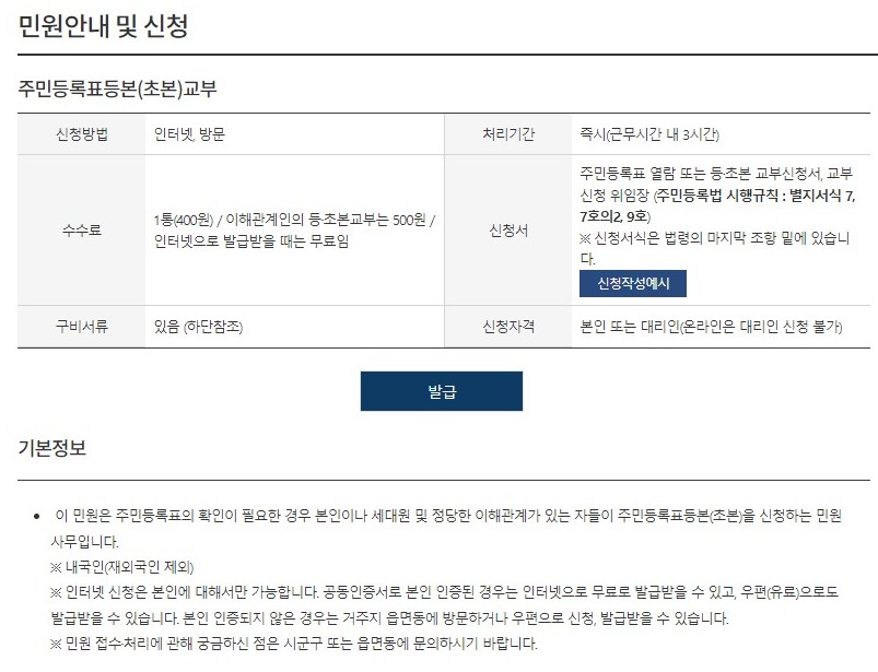 그외 수수료는 400원 또는 500원으로 되어잇음으로 구비서류를 잘 확인해서 이용하시고 신청작성을 하시면 됩니다.