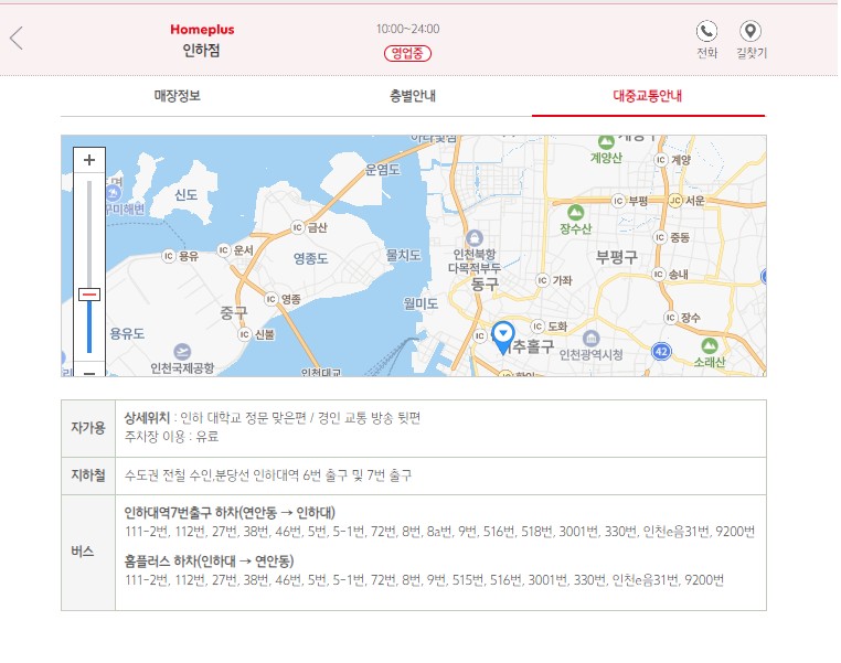 홈플러스 인하점 위치 휴무일