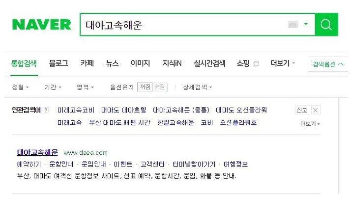 네이버를 통해서 대아고속해운을 검색하면 각 운항은 물론 운임안내까지 모두 확인이 가능하죠