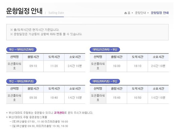 그외에 오션플라우어호를 비롯해서 최소한의 시간과 함께 도착시간을 확인하면 좋습니다.