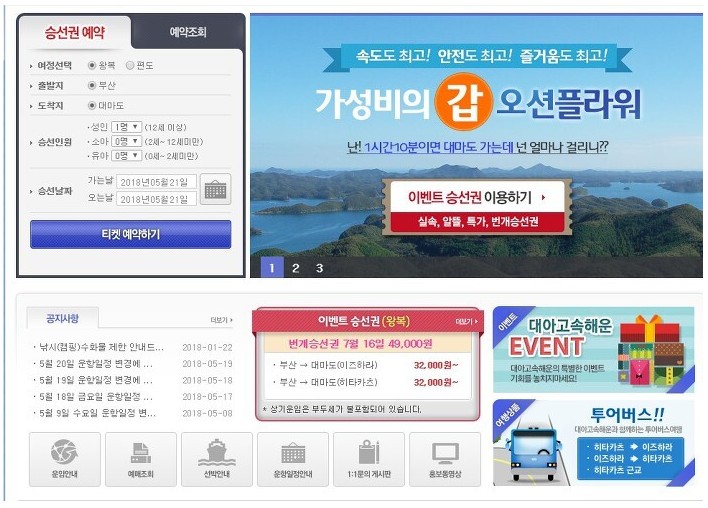 혹시나 자신의 여행지나 장소를 잘 모르거나 일반석 또는 기타 궁금한 점이 있다고 하면 대아해운고속을 통해서 홈페이지에서도 확인하면 됩니다.